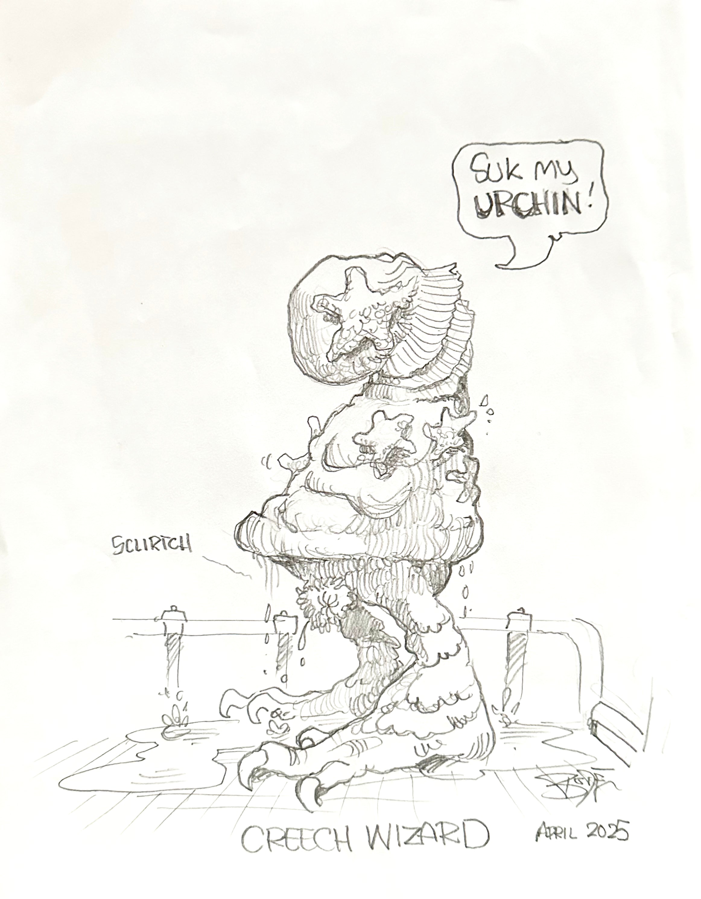 Mark Bode- Titled "Cheech Wizard" Graphite on paper, Measures 11" x 8.5" Inches. Original Cheech Wizard Drawing.Signed and dated by Mark Bode from 2025.