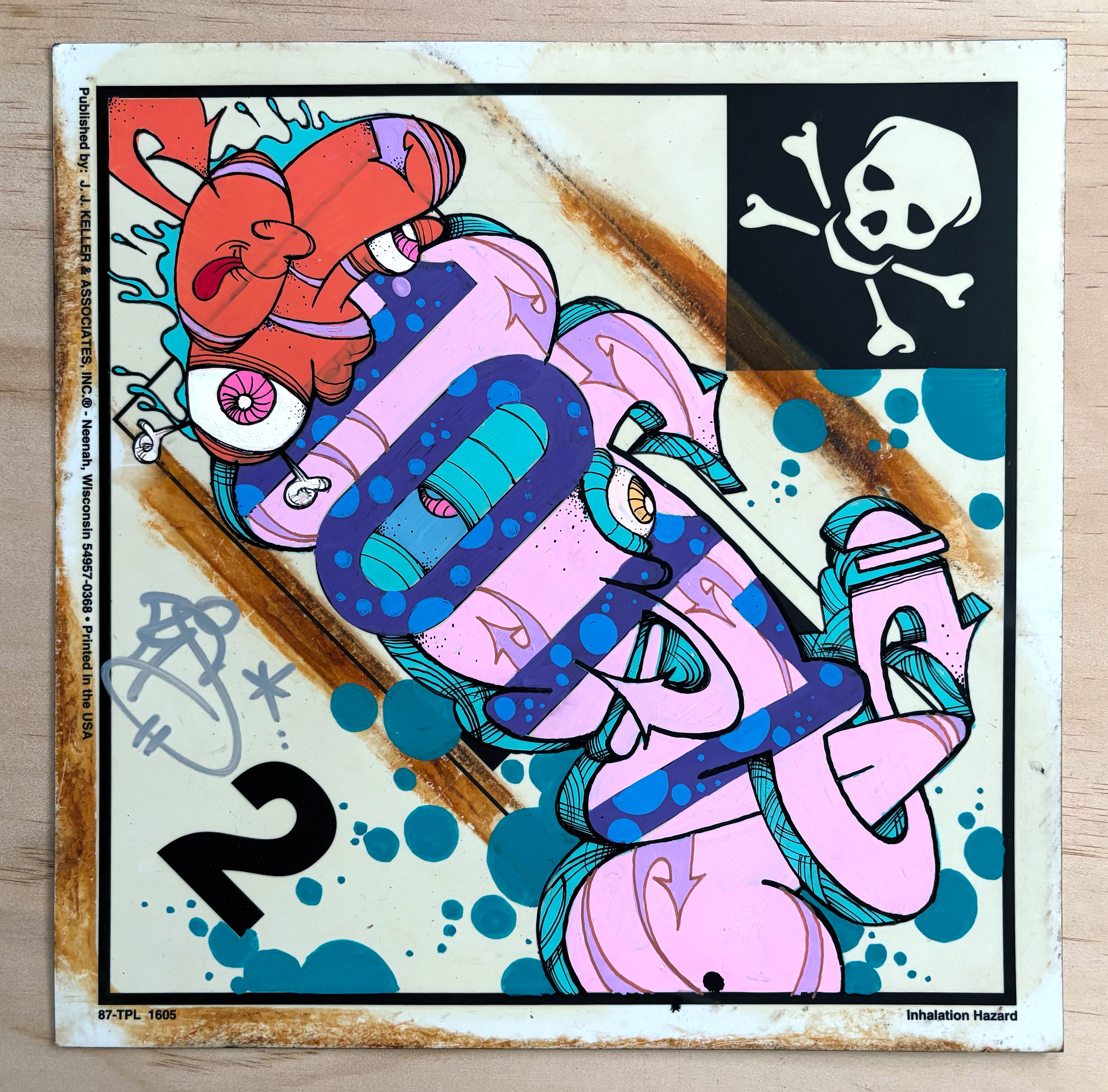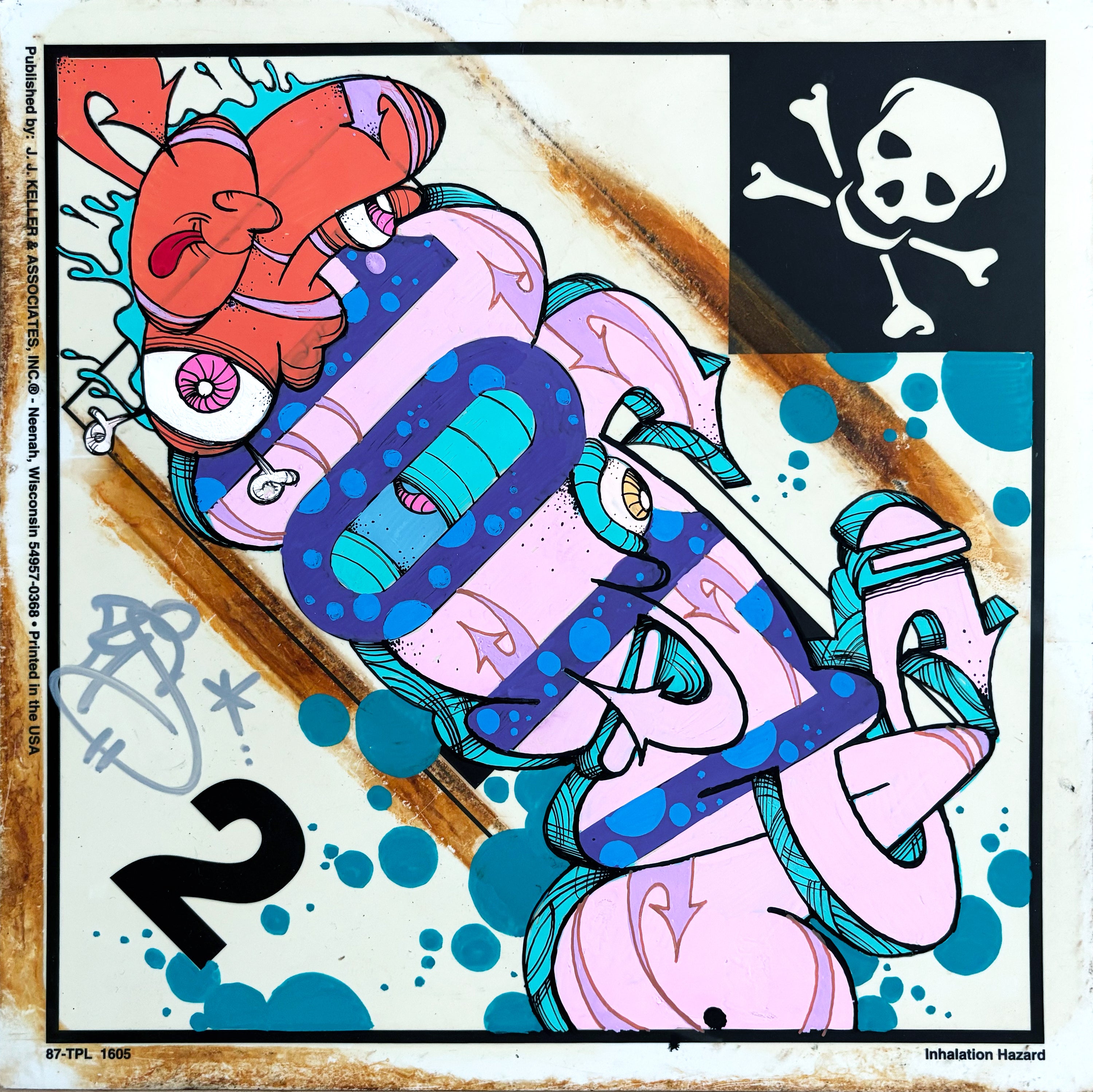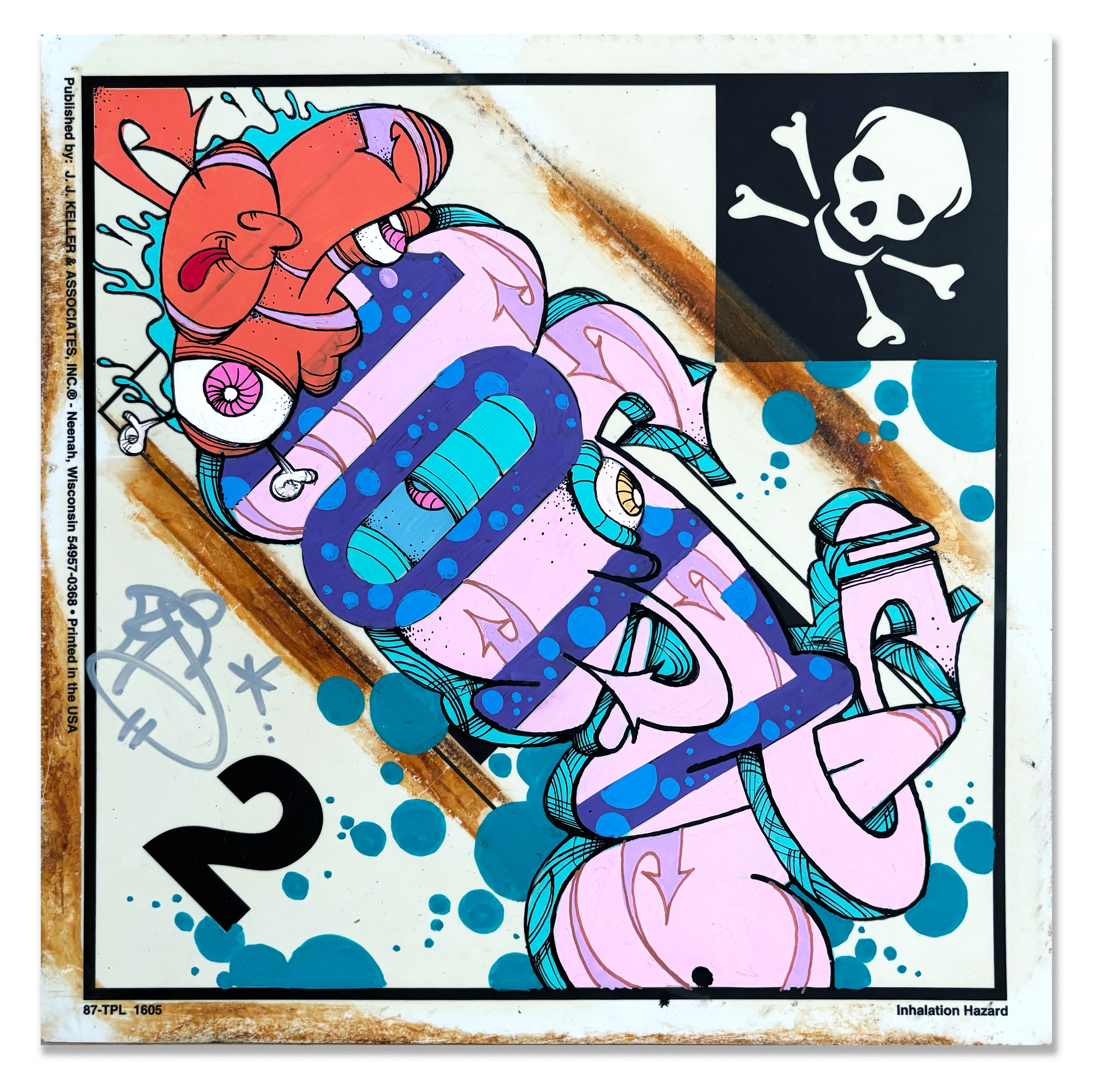 Ghost "Trucking Hazmat Placard" - Acrylic, Spray and Marker on top of laminated Vinyl Trucking Hazmat Placard. Size measures 11"x 11" from 2025