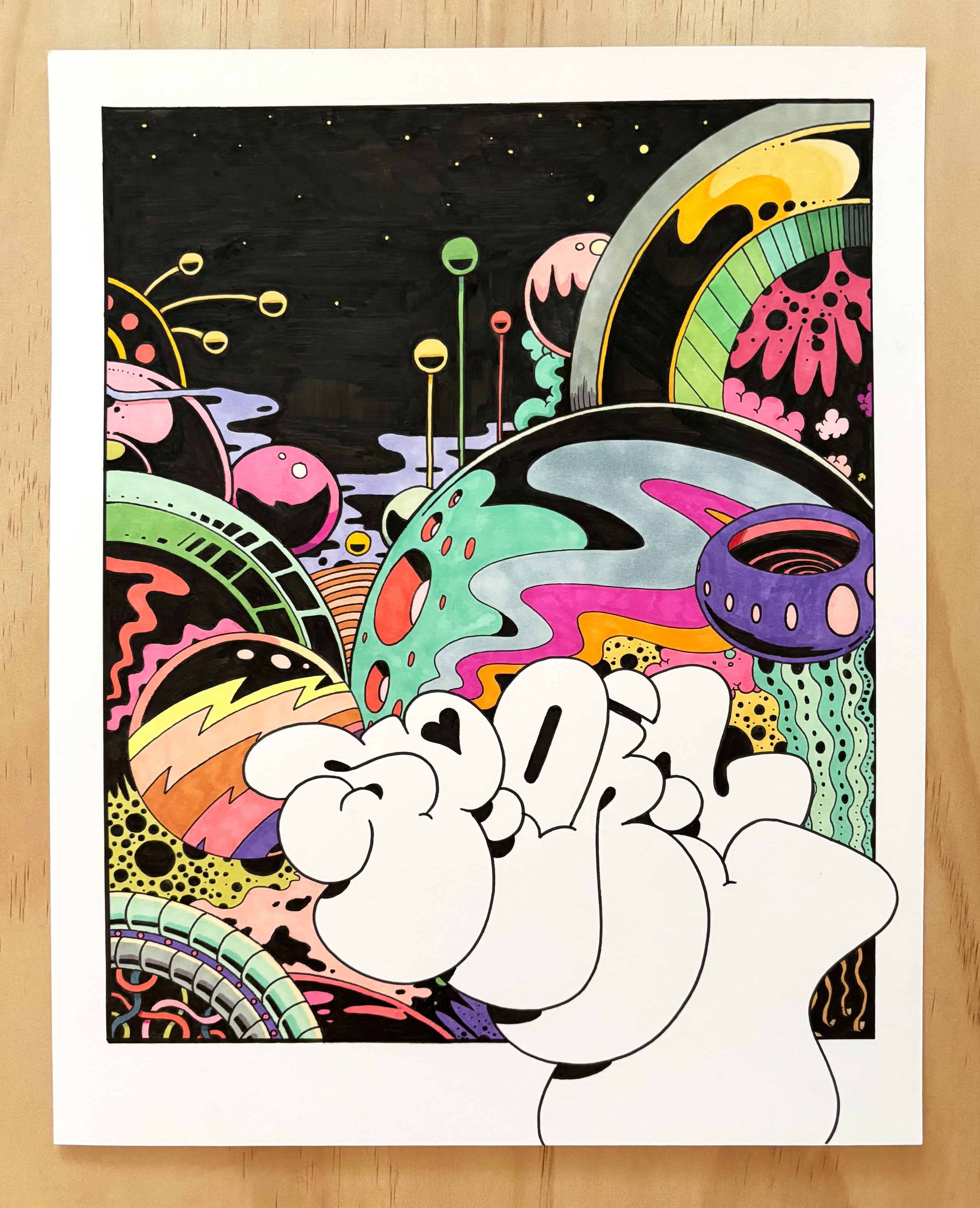 SPONE - "Untitled" Drawing , measures 14"x 11" and accomplished with ink and watercolor on light card stock.