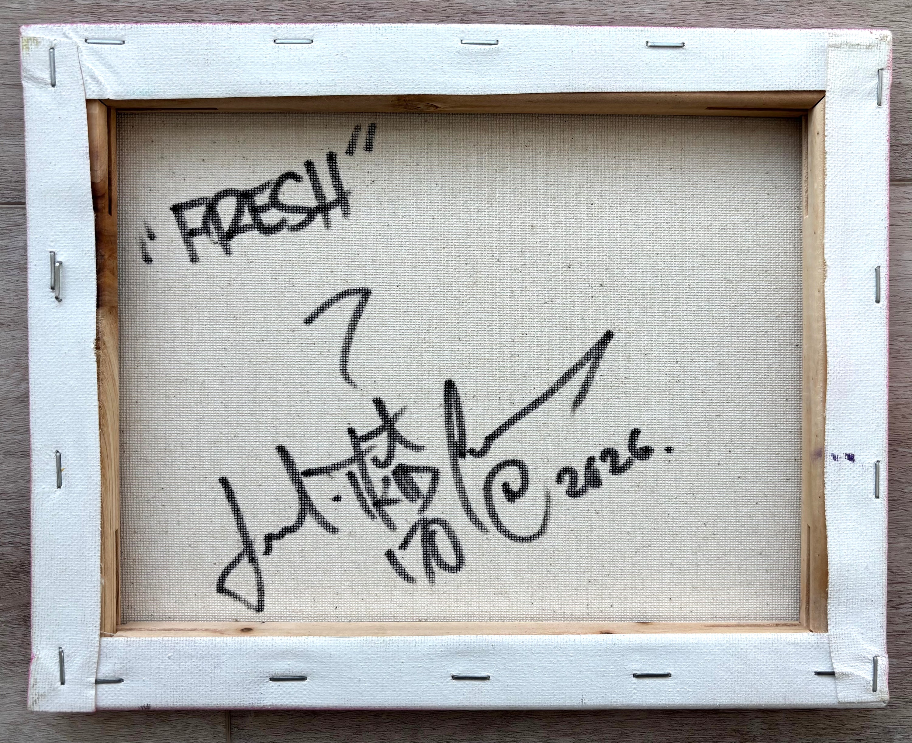 T-KID 170  - "Fresh."  Painting. Aerosol, Acrylics and Marker on canvas Measures 8" x 10" inches. Hand signed and dated by TKID, verso.2026