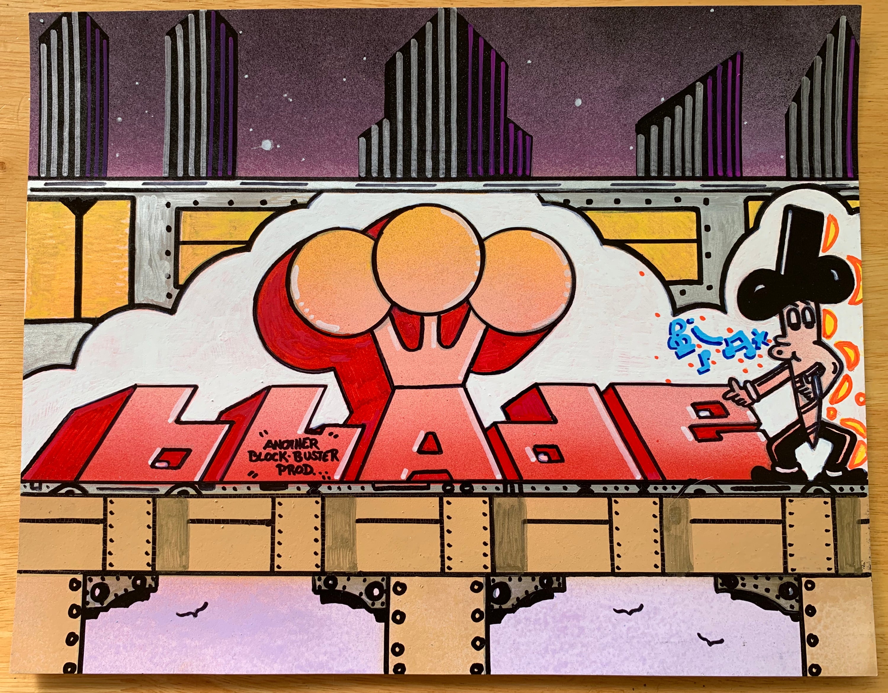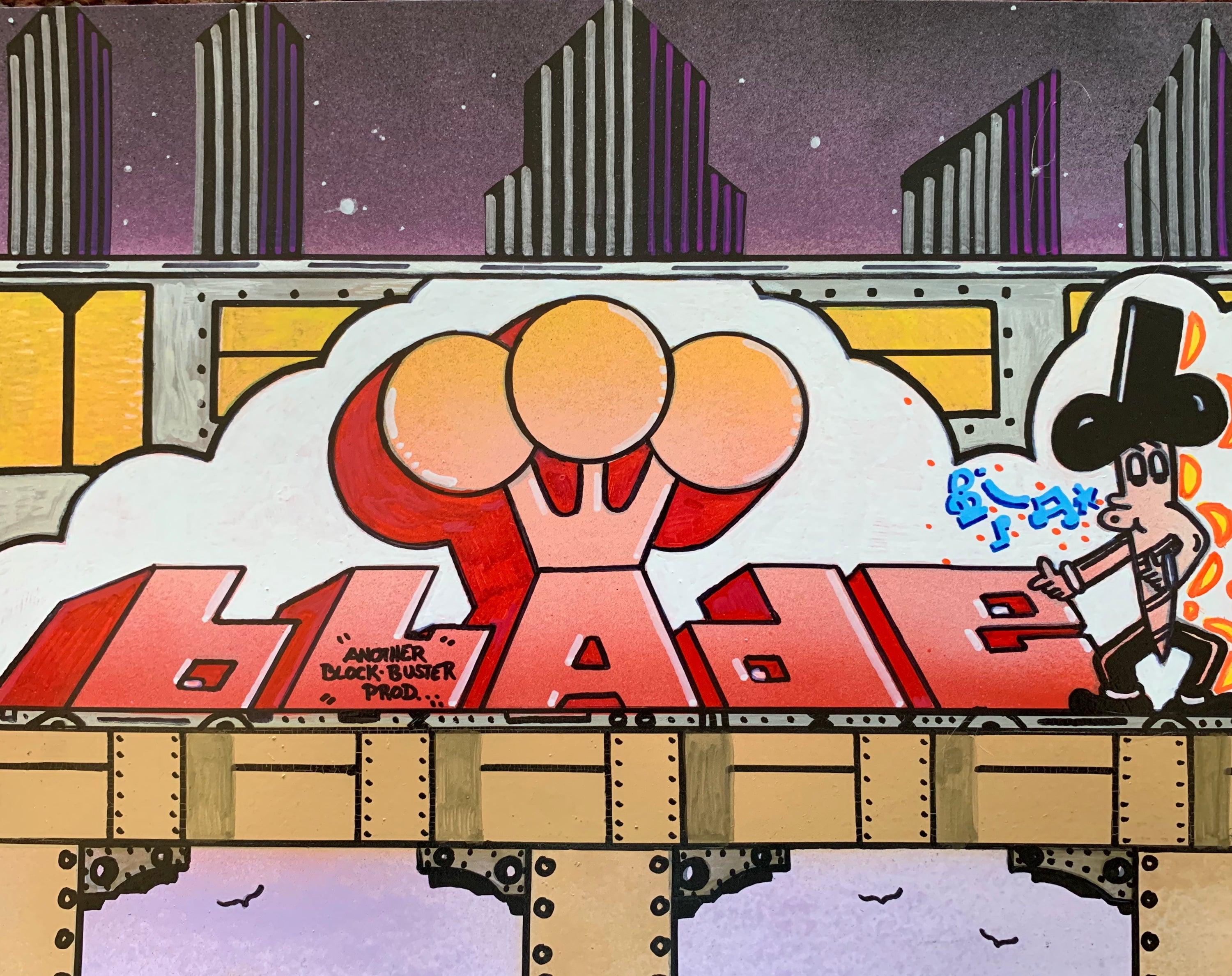 BLADE - ""Another Blockbuster"- Aerosol and marker on Strathmore, measures  11" x 14" inches . Signed verso, from 2022