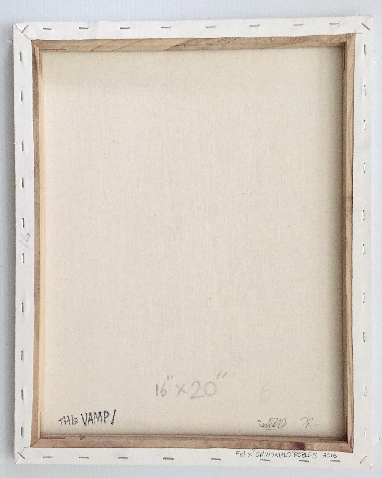 CHINO MALO "Vamp" painting . Aerosol & Acrylic and marker on canvas. measures 16" x 20". Signed and dated verso, 2016