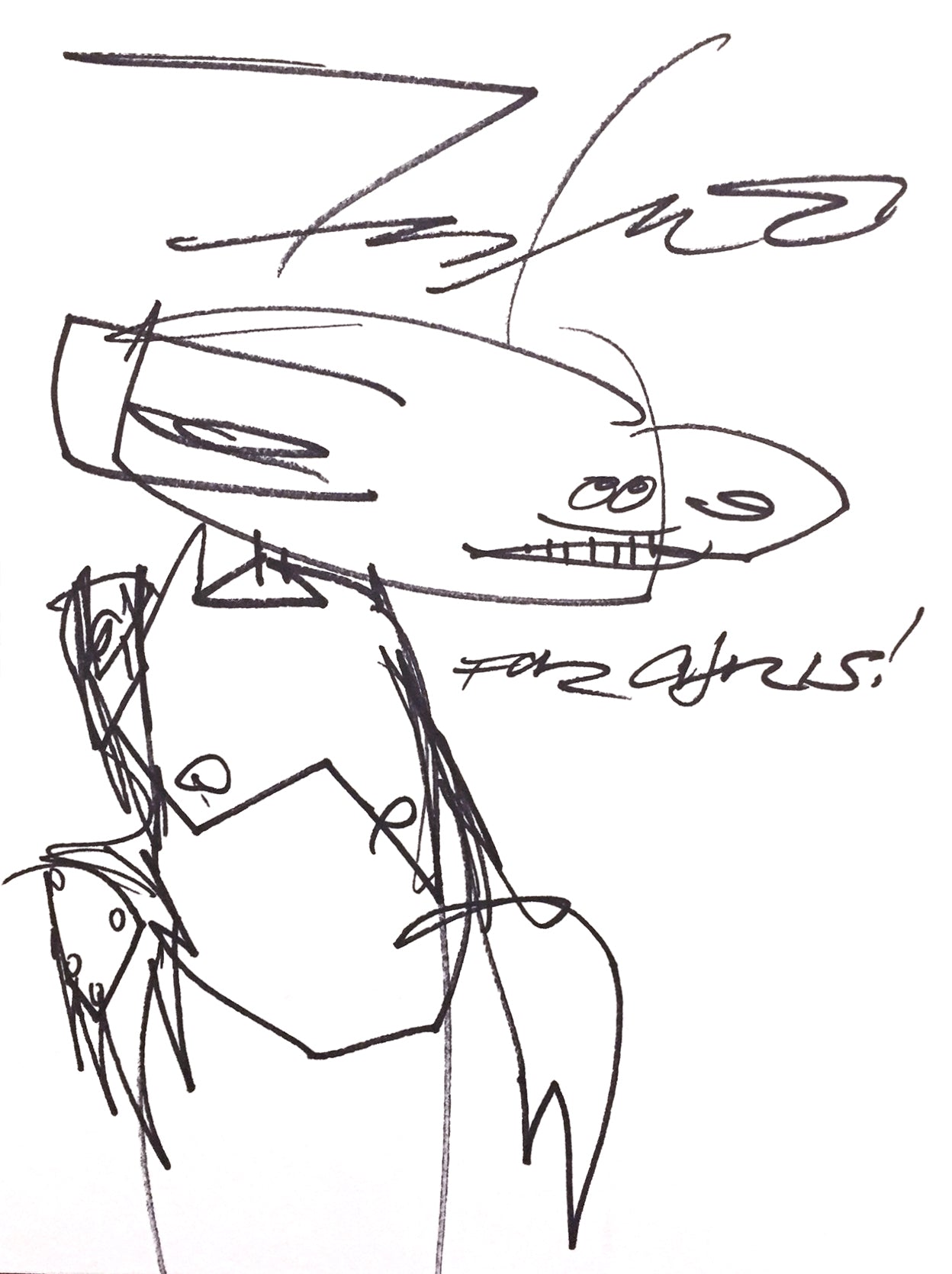 Futura 2000 RARE Black book drawing. Accomplished in marker on card stock, measures approx 8.5 x11". In excellent condition as shown. Dedicated to Chris, from 2018.