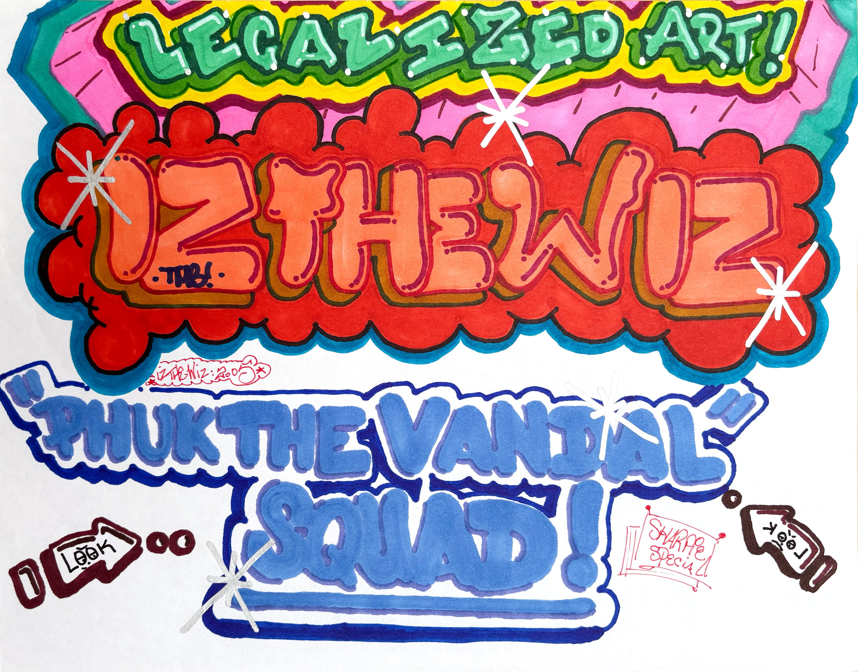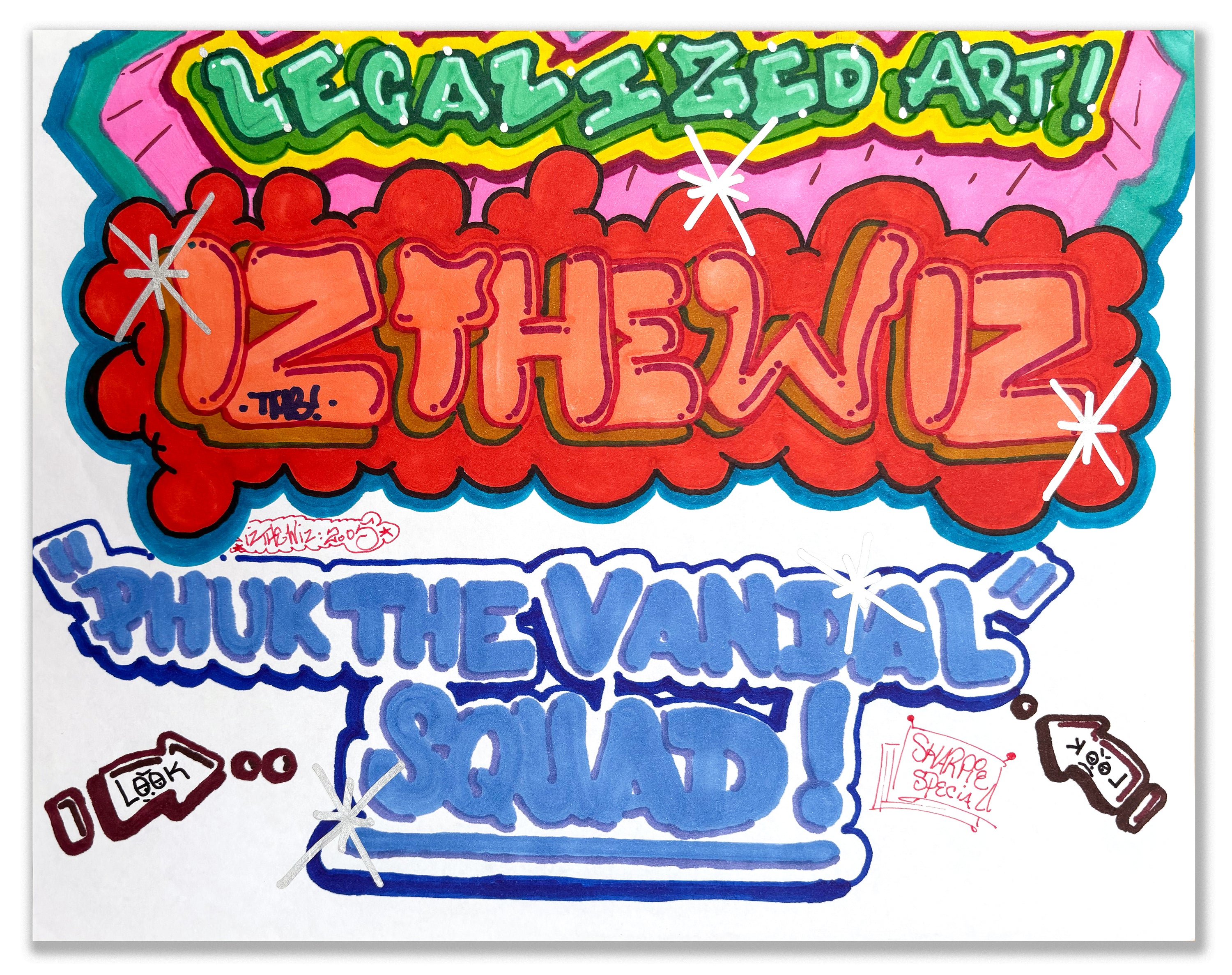 IZ THE WIZ, Titled "Legalized Art" - Marker on paper.  Size measures a LARGE 11”x 8.5”inches. Signed by IZ THE WIZ. From 2005.