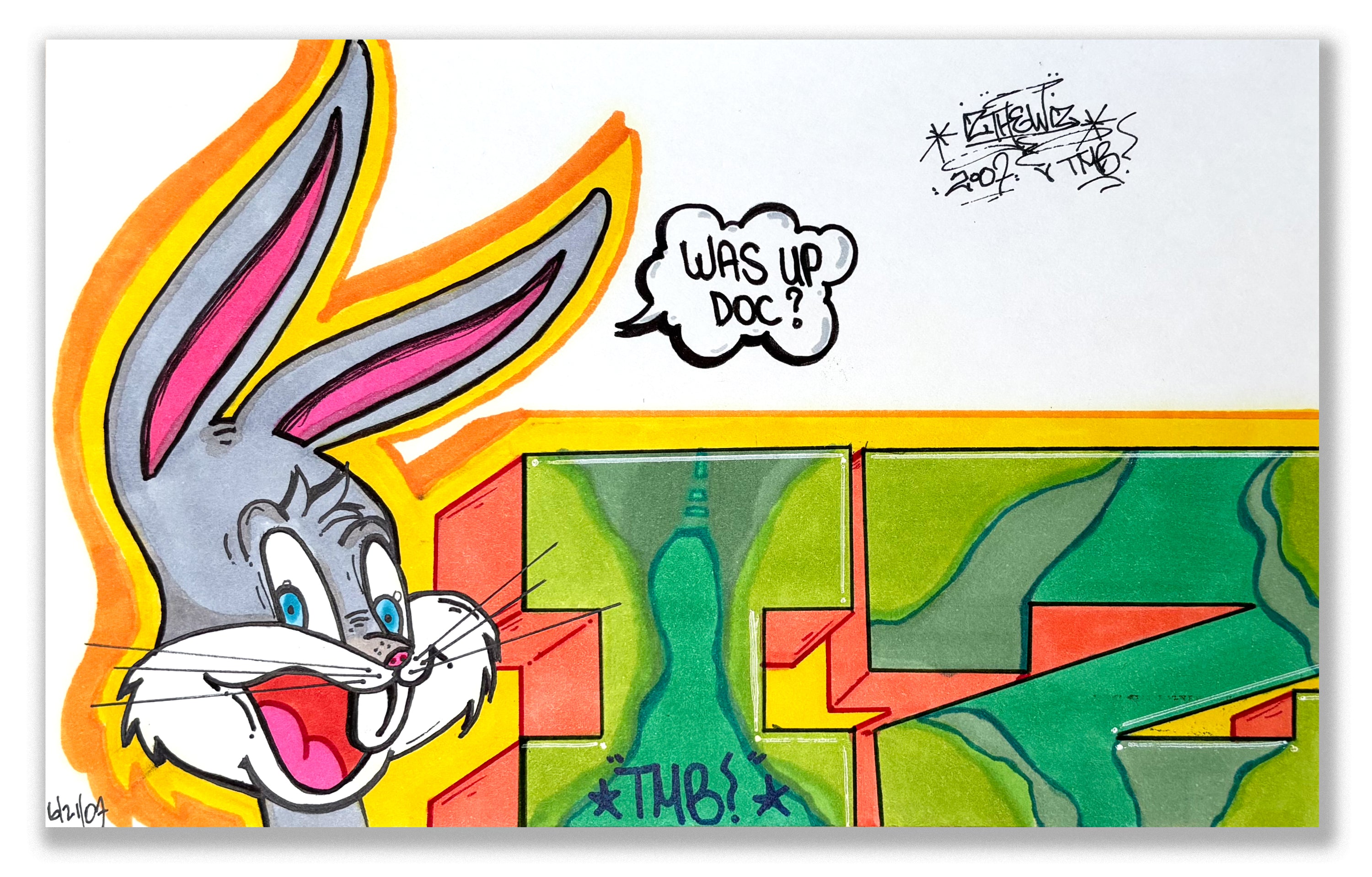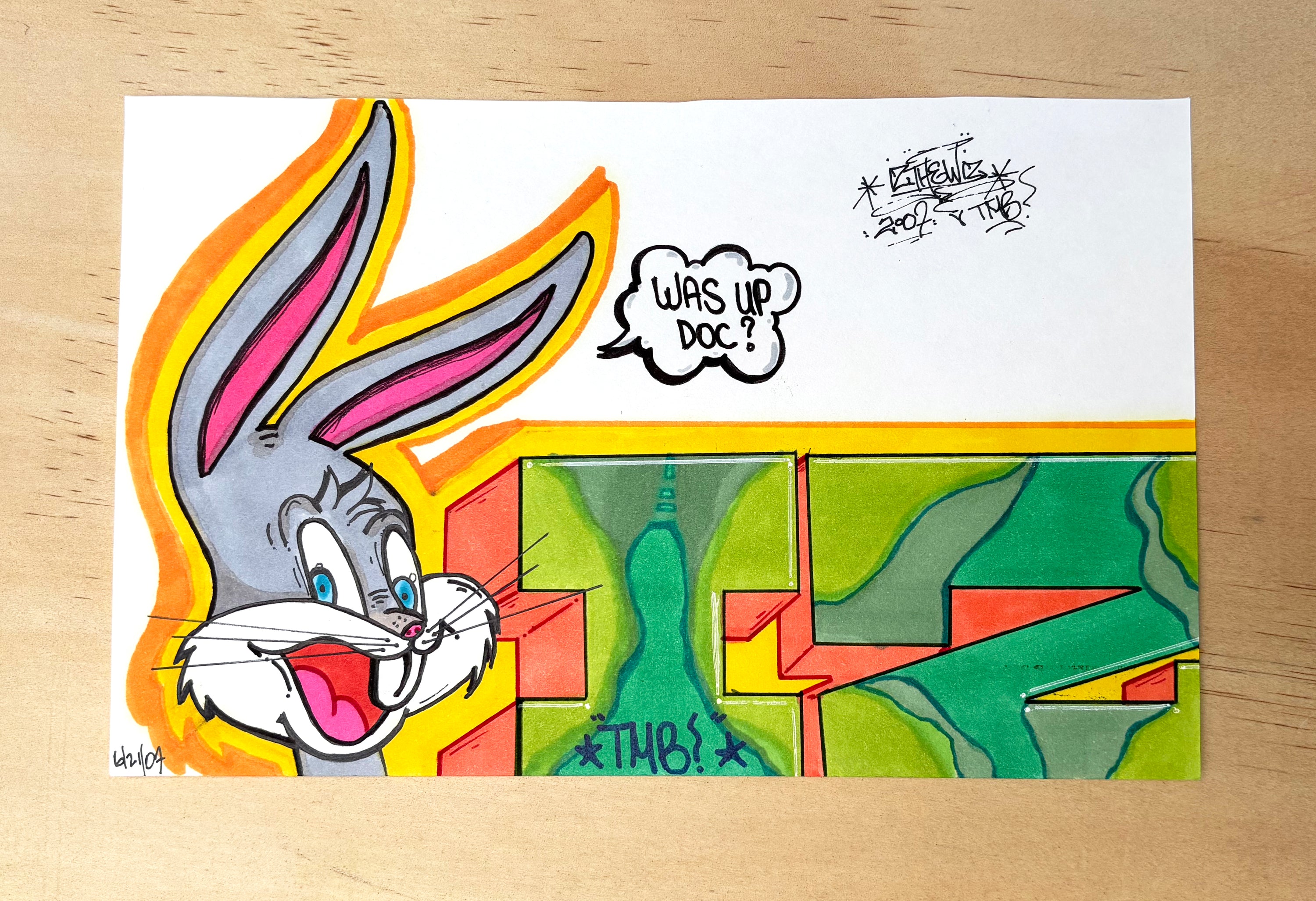IZ THE WIZ, Titled "Whats up Doc?" - Marker on paper.  Size measures 8.5”x 5.5”inches. Dated 6/21/2004 lower left by IZ THE WIZ.