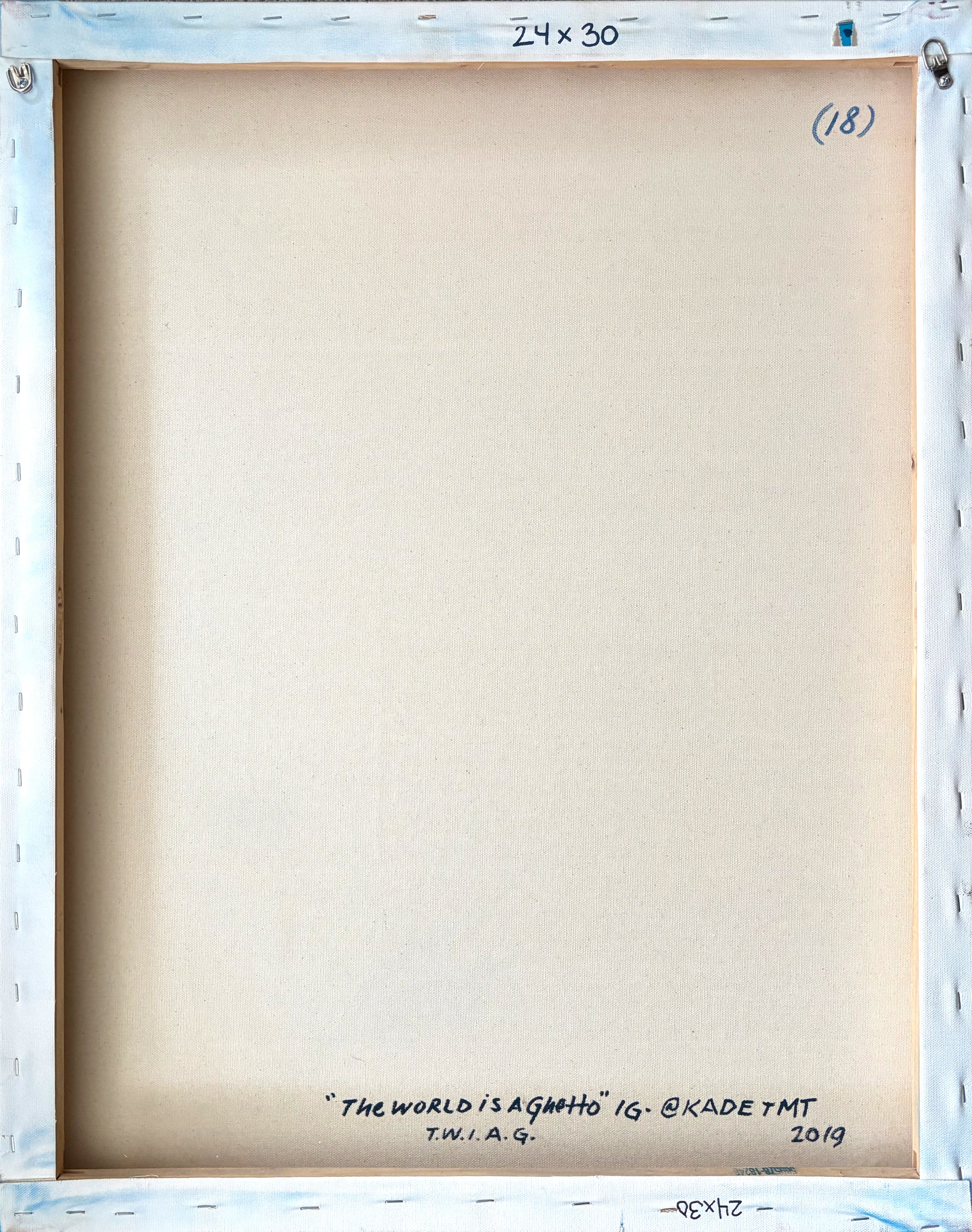 KADE TMT - "The World is a Ghetto"  Painting. Acrylics on canvas. Measures 30" x 24" inches. Signed and dated verso, from 2019.